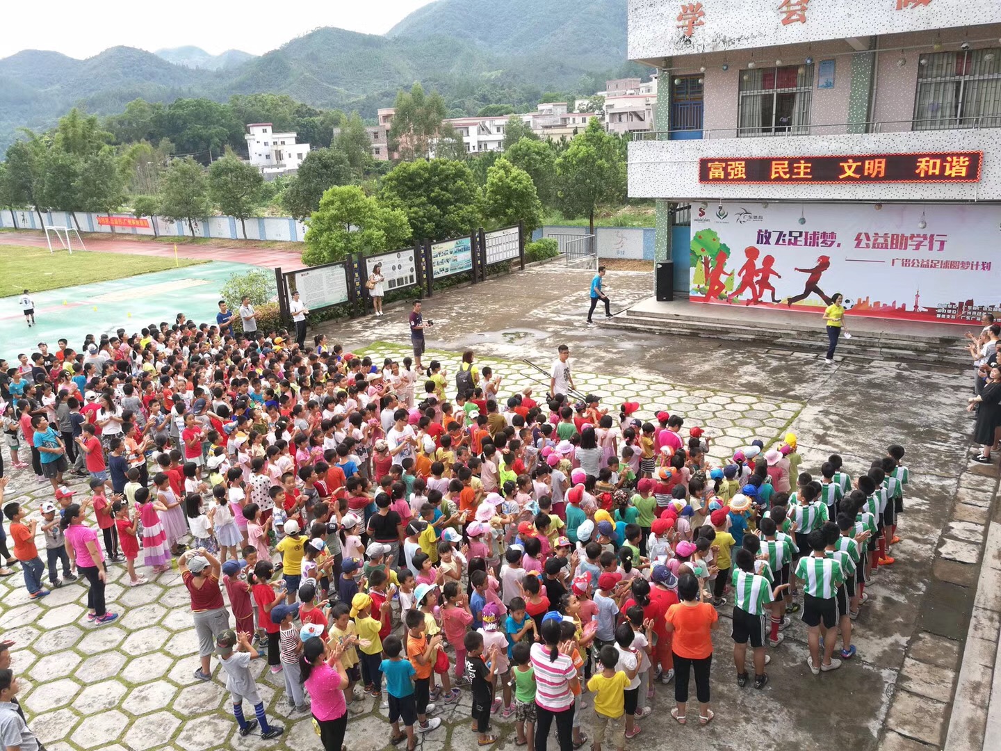 9月22日(周五)下午,和记娱乐公益足球圆梦计划首站来到了云浮新兴县里洞镇中心小学,并在学校成立“和记娱乐公益足球圆梦基地”。