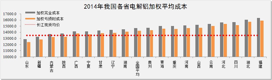 2014年我国电解铝生产加权成本分析