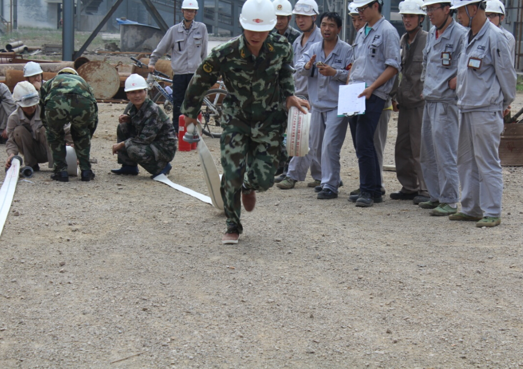 为普及消防安全知识,提高员工安全消防意识、安全防范与自救能力,提高消防设施、设备、安全防护器材的使用能力,加强企业干部职工检查消除火灾隐患能力、扑救初期火灾能力、组织疏散逃生能力和消防宣传教育能力的消防安全“四个能力”建设,有效防范火灾事故的发生以及最大限度减少和降低事故损失,并根据安全生产月活动方案,2014年6月13日,安环处组织公司各车间、处室人员进行了消防水带、空气呼吸器使用比赛,在比赛后组织各参赛人员进行灭火器实操演练。