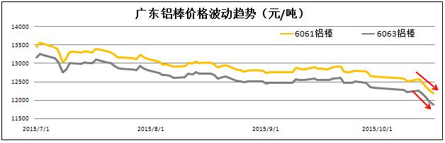 受全球铝市疲态的影响,报告期内我国铝棒价格呈现出阶段性大跌的异常现象。截至10月中旬,广东6063型铝棒价格下浮至10995元/吨,月化环比下降11.1%。铝棒价格大幅下浮的另外一个主要原因是铝型材市场需求在原本疲惫的环境下,原料需求进入季节性淡季。
