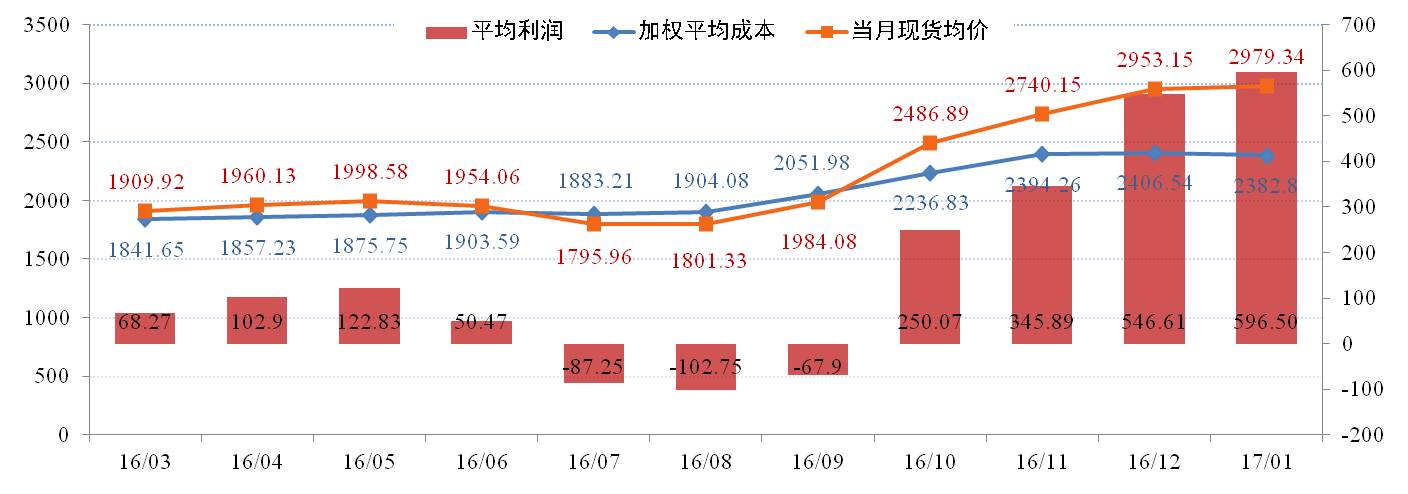 企业生产成本方面。2月铝土矿价格走势基本平稳,北方部分主流矿石价格小幅下降;煤炭价格稳中有降;烧碱价格相对坚挺。截止到2月末的山西地区成本区间2150-2450元/吨;河南地区成本区间2300-2500元元/吨;山东地区成本区间2350-2500元/吨;广西地区成本区间2000-2250元/吨,全行业加权成本预计在2320元左右,而北方的加权成本预计在2360元左右。以截止到2月末的成交平均价格2920元来计算,氧化铝全行业实现盈利。