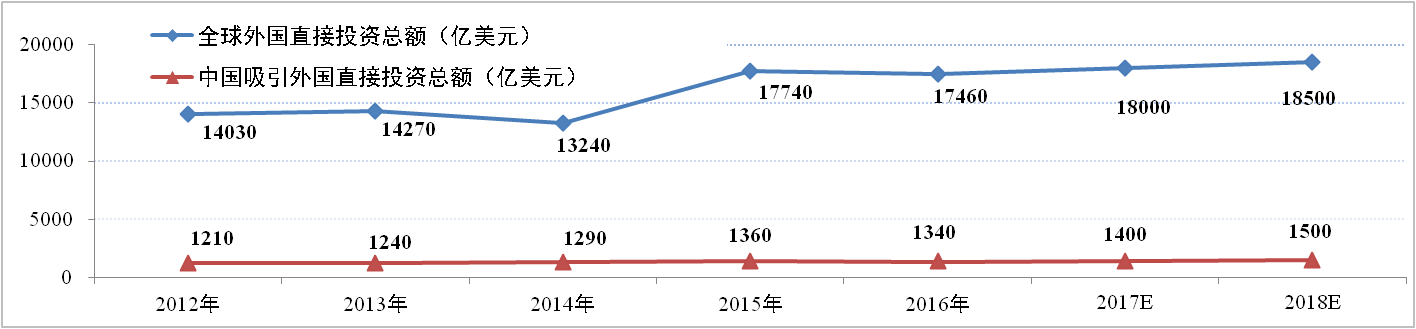 6月7日,联合国贸易和发展会议发布《2017年世界投资报告》,在全球经济增长疲弱和跨国企业预判政策风险较大的背景下,2016年全球外国直接投资总额下滑2%至1.75万亿美元。中国对外投资增长44%至1830亿美元,仅次于美国;中国吸引外资1340亿美元,仅次于美国和英国。同时,报告预测2017年全球外国投资将增长5%至1.8万亿美元,2018年将升至1.85万亿美元。
