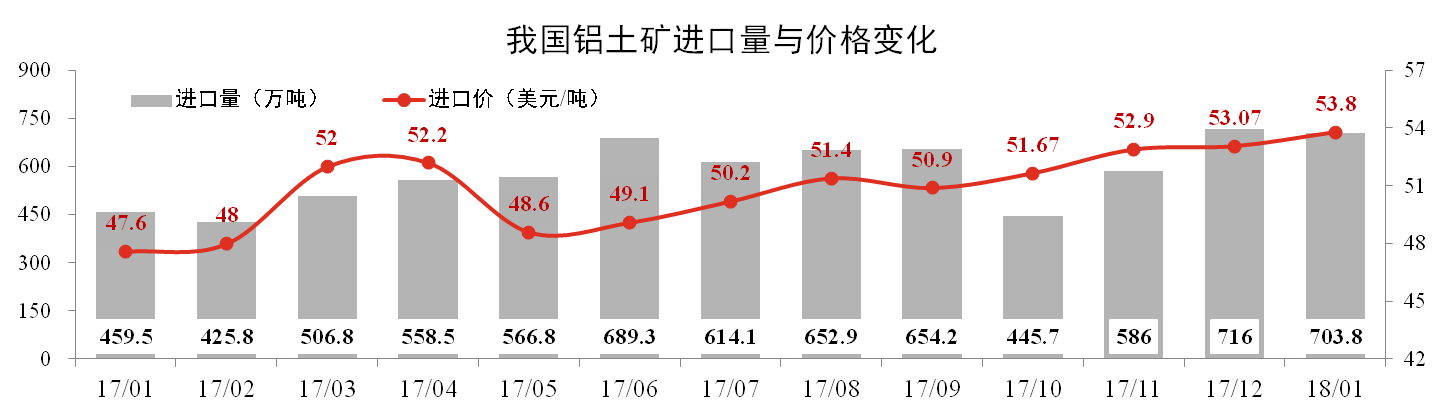 发稿时间:2018-03-23一、铝土矿进口量高位持稳