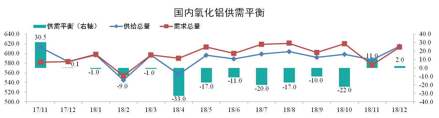 分析认为:12月矿石供应逐渐稳定,加之利润驱使,氧化铝产量有所增加,下游需求依旧疲软,氧化铝供给过剩。1月氧化铝价格将下行至临界点,部分企业将出现适度减产,但需求仍处弱势,预估供给过剩。
