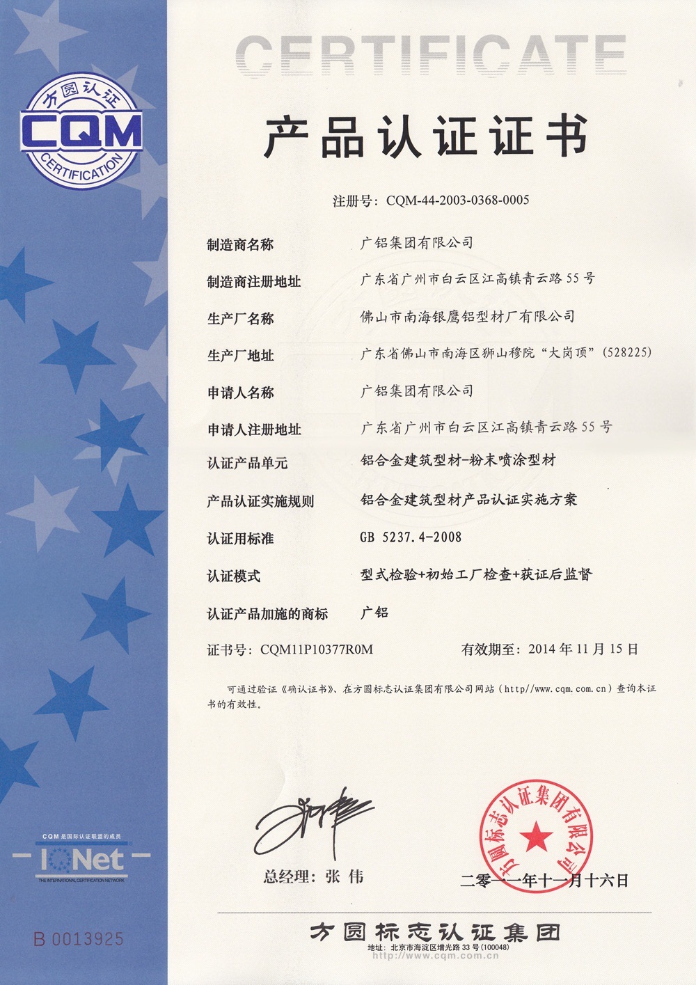 About Voice of chairman Company introduction Galuminium culture Honors & awards News Download Mobile Phone APP for GAL GAL for Android GAL for iPhone ———————————— Wechat of Galuminium Add: Please search: GaluminiumGroup or you can scan qr code directly ———————————— doitnw.com China Well-known Trademark National Enterprise of New and Advance Technology National Accreditation Laboratory Guangdong Province Enterprise Technical Center Construction of curtain wall and installation Qualification Grade 1 certification Guangdong Province famous brand product Guangzhou City first-batch Headquarter Enterprises High-tech products in Guangdong province FangYuan products quality system certificate Adopting international standard products symbolic certificate ISO9001 Quality Management System Certification ISO14000 Environmental Management System Certification China's top 10 energy-saving and innovative enterprises The famous trademark of Guangdong province Contract-honored and credible enterprise AA level of Guangzhou City harmonious labor relations enterprise Guangdong province Top 100 Private Enterprise Workers pioneer organization ADOPTING INTERNATIONAL STANDARD PRODUCT MARKING CERTIFICATE