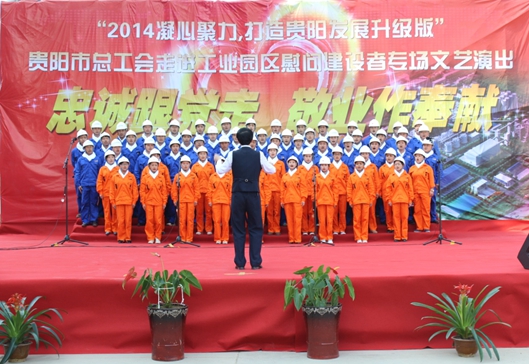 Post time:2014-04-212014年4月18日下午15:00时,贵阳市总工会“忠诚跟党走 敬业做奉献”走进工业园区慰问建设者专场文艺演出在贵州公司如期举行。贵阳市总工会党委副书记严贵均、副主席赵凯、清镇市园区党政工作部部长龙礼超等领导应邀观看了演出,海螺水泥、西南水泥等园区主要企业相关人员也到场观看了演出。